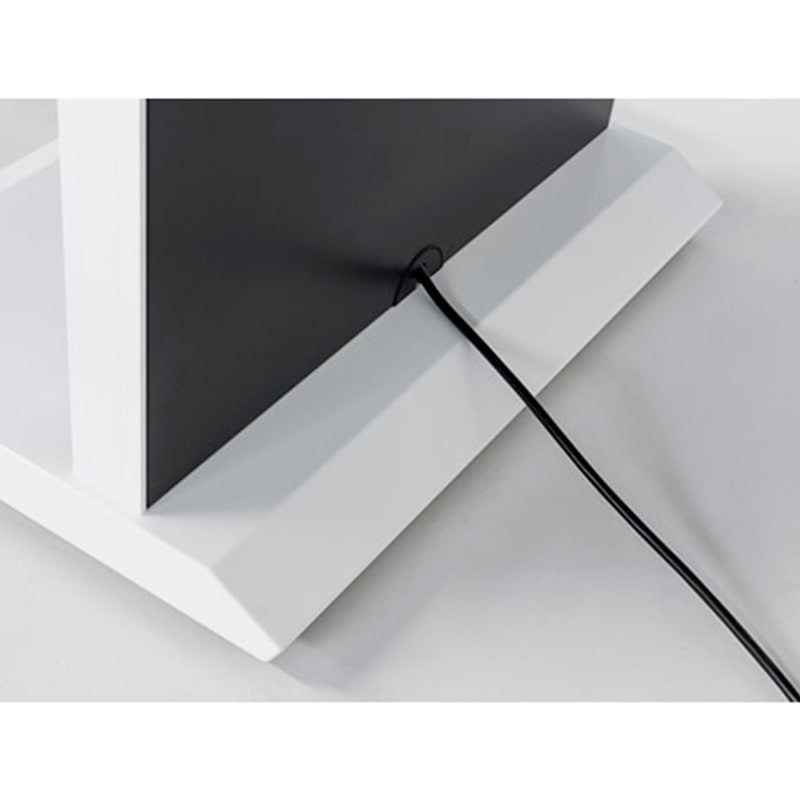 Dispone de paneles de melamina de color a elegir entre blanco o negro, y además tiene un hueco en el interior para el cableado. Soporta una carga máxima de 30 kg.