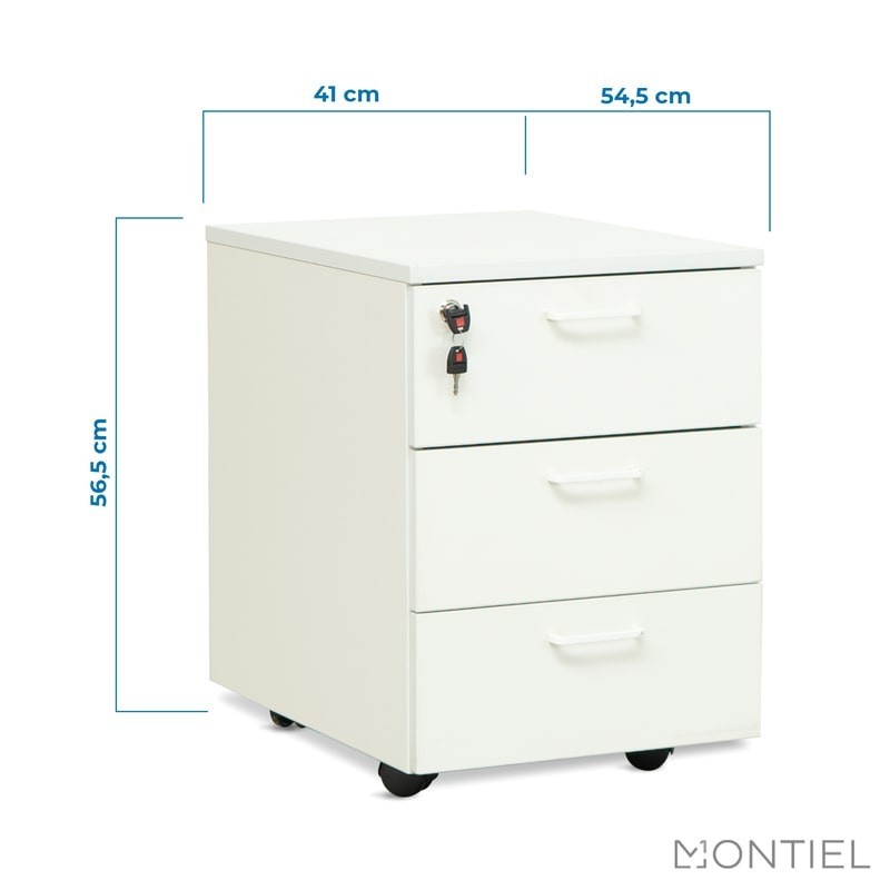 La cajonera Actiu de 56,5 x 42 x 55 cm. está fabricada con estructura laminada y tapa de 16 mm de grosor en color blanco.