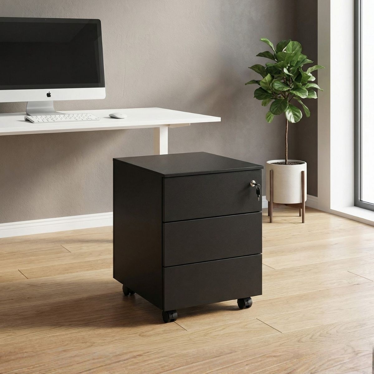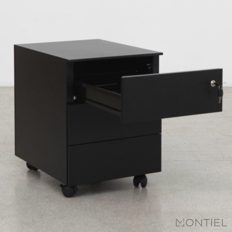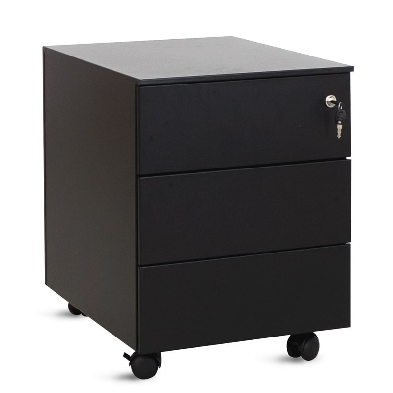 Cajonera con Ruedas y Llave Metálica Negra con 3 cajones de Kunna