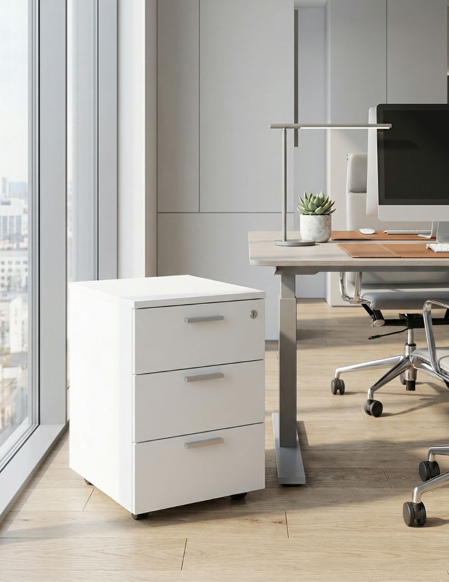 La inclusión de una cerradura y llave hace que esta cajonera sea una elección ideal para entornos profesionales donde la seguridad de los contenidos es una prioridad. Ofrece tranquilidad a quienes necesitan mantener información confidencial a salvo.
