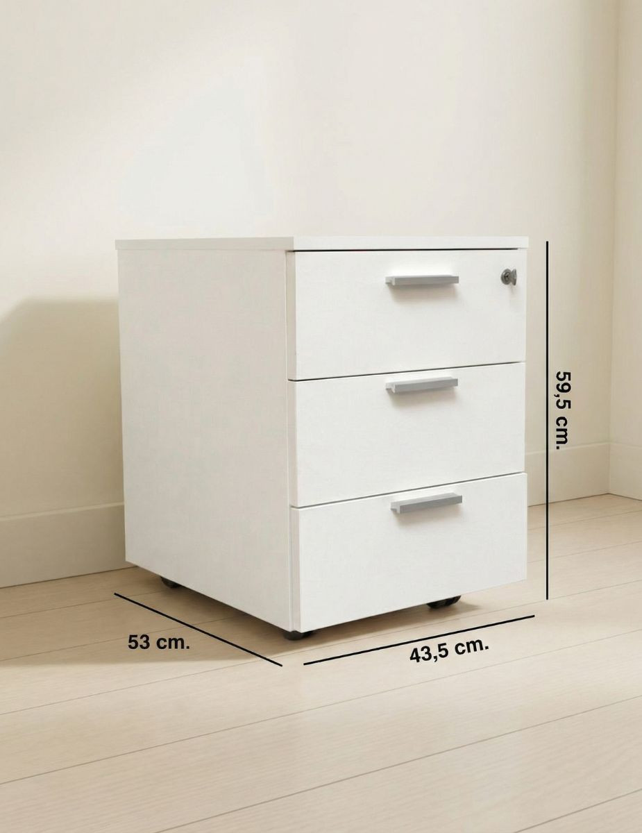 Cajonera 3 cajones madera Blanca con Llave de Forma 5