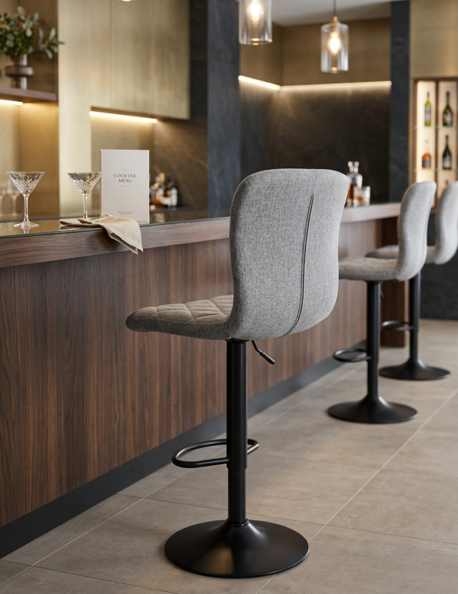 El Taburete Giratorio Gris Britain de Adec es una opción ideal para quienes buscan comodidad, diseño moderno y funcionalidad en un mismo asiento. Su combinación de estructura negra con tapizado en color gris aporta una estética elegante y versátil, perfecta para espacios actuales.
