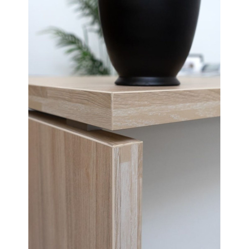 Su tablero de melamina por ambas caras está disponible en varios acabados a elegir, presentando siempre el ala y el frente en color blanco, ambas partes de melamina. Las encimeras y pies fabricados en tablero de aglomerado de espesor de 40 mm y cantos rectos de 2 mm de grosor.