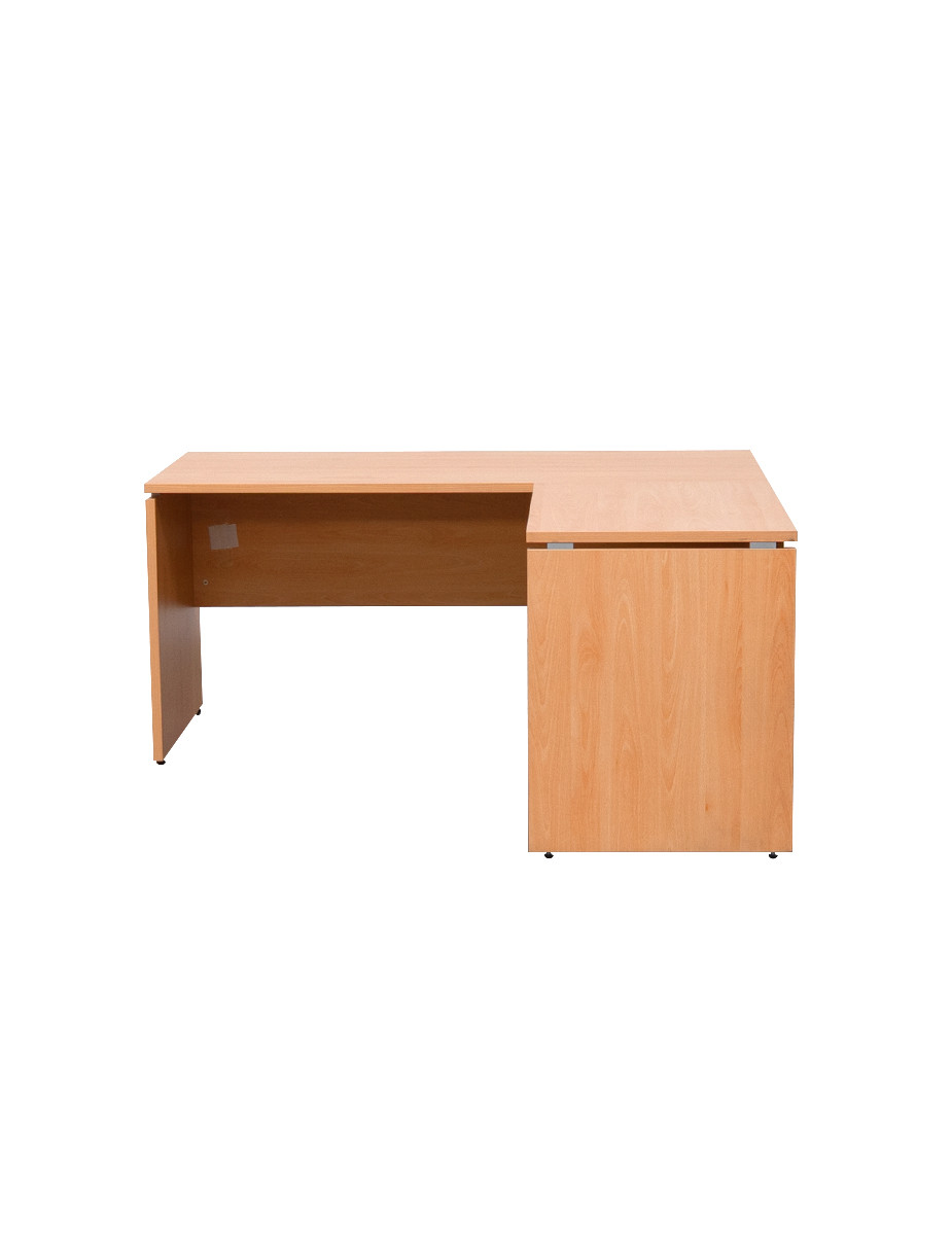 Las encimeras y pies están fabricados en tablero aglomerado de melamina disponible en varios acabados a elegir, de 25 mm de espesor. Este modelo de la colección de mesas de despacho de Herpesa incluye ala de 100x60 cm a ambos lados (izquierda y derecha) con faldón.