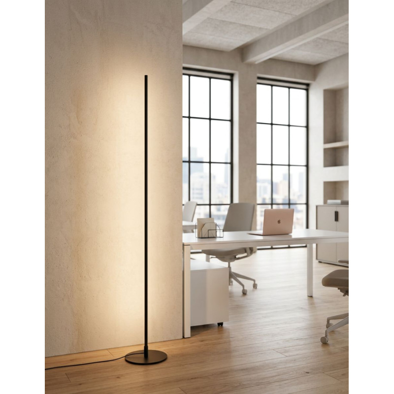 La Lámpara de Pie Metálica Negra LED 27W Meghri es una pieza estilizada y contemporánea pensada para aportar iluminación cálida y elegante a oficinas, salas de espera o espacios de diseño actual. Con unas dimensiones de Ø20 cm de base y 150 cm de altura, su formato vertical y minimalista permite integrarla fácilmente en distintos ambientes sin ocupar demasiado espacio.