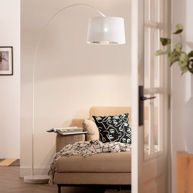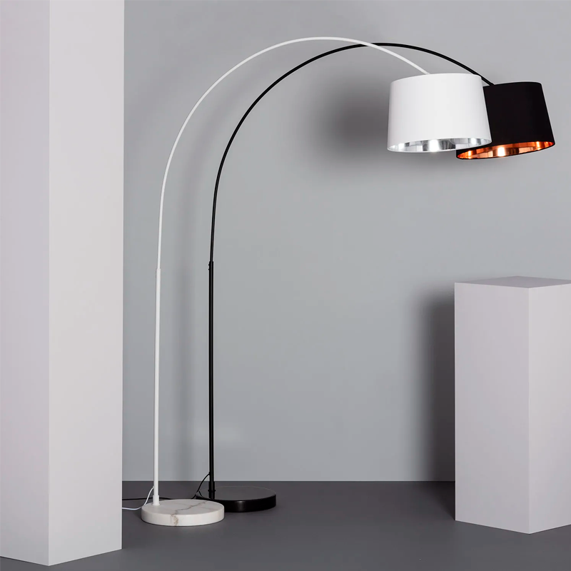 La lámpara de arco grande Fulgor es una pieza única que combina un diseño elegante con acabados de máxima calidad. La lámpara de pie arco esta compuesta por una estructura metálica y es de estilo moderno, lo que le confiere un aspecto contemporáneo y sofisticado. Está disponible en dos acabados distintos: blanco y negro. Estas opciones de color permiten adaptar la lámpara a diferentes estilos y decoraciones, asegurando que se integre armoniosamente en cualquier entorno.