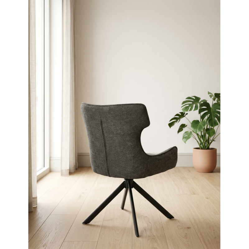 Destaca su respaldo curvado tipo orejero, diseñado para mejorar el apoyo lumbar y proporcionar mayor confort. Además, incorpora brazos integrados, que refuerzan la ergonomía y hacen de esta silla de comedor una opción práctica y confortable para cualquier espacio.