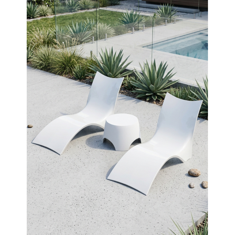 Fabricado íntegramente en polipropileno con acabado en color blanco, este conjunto destaca por su ligereza, durabilidad y fácil mantenimiento. Su diseño limpio y luminoso aporta una estética fresca y moderna, perfecta para crear espacios relajantes y funcionales.