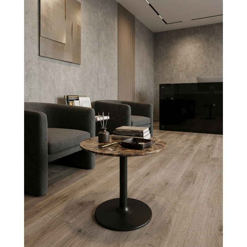 Esta mesa auxiliar redonda destaca por su estética elegante y contemporánea, ideal para salas de espera, zonas lounge, despachos o espacios de recepción que buscan un mobiliario con personalidad.