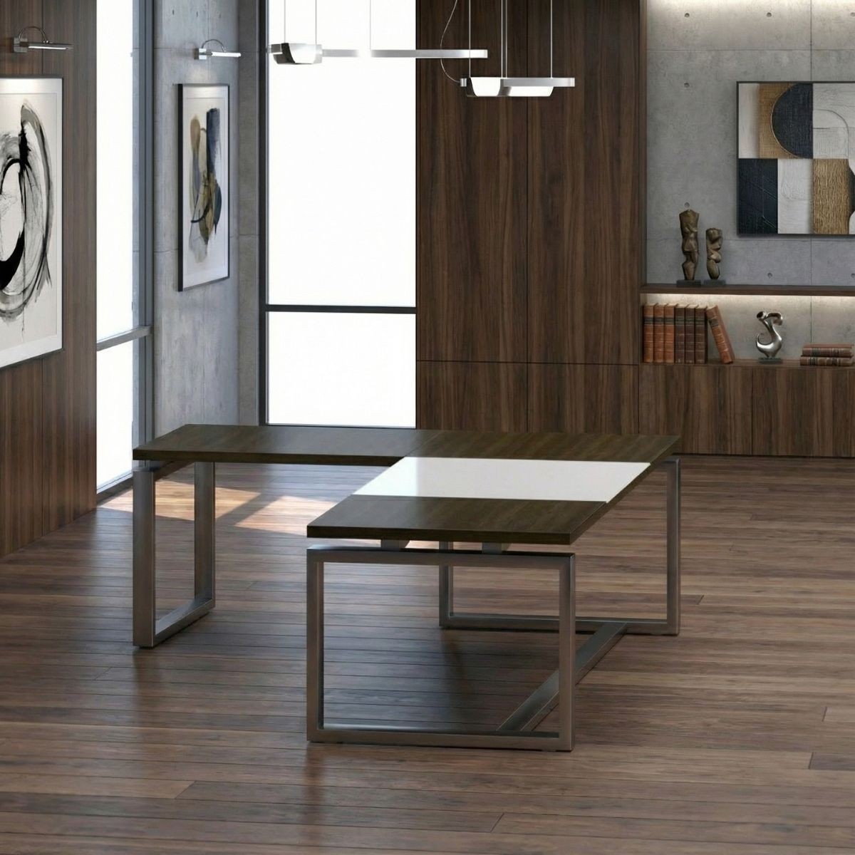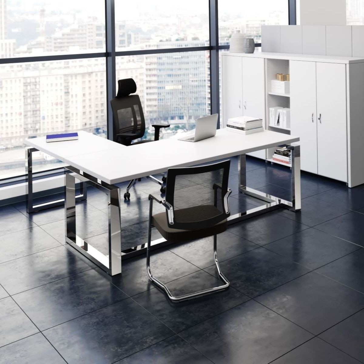 Una mesa de dirección en L pensada para quienes buscan espacio, orden y una presencia ejecutiva profesional en su despacho.