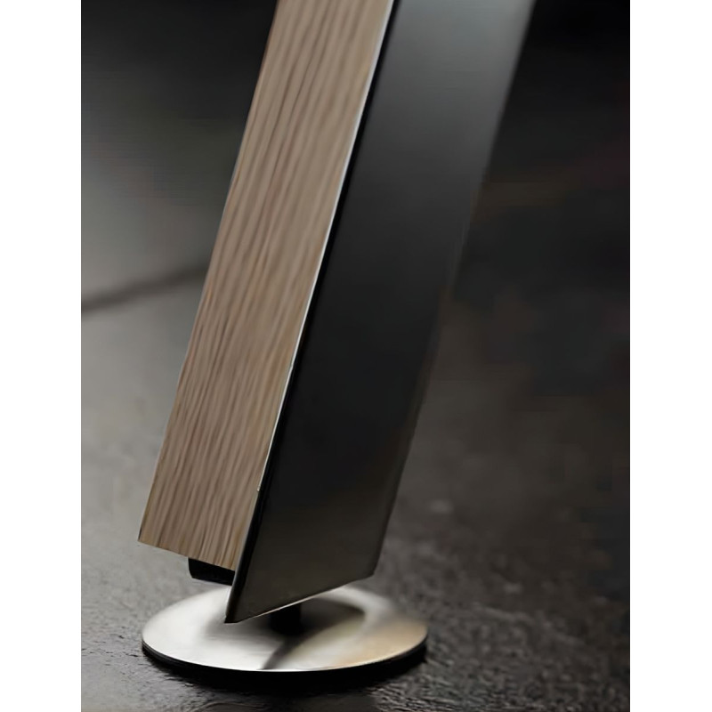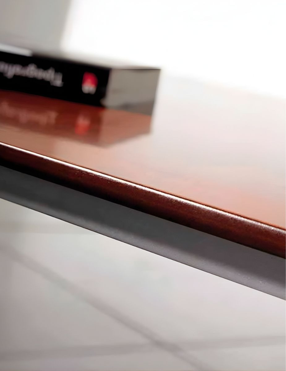 Dispone de una estructura fabricada con un perfil de acero en forma de L, pintado con epoxi color aluminio. Sobre ésta, se coloca un listón de melamina del mismo acabado que elijas para el tablero.