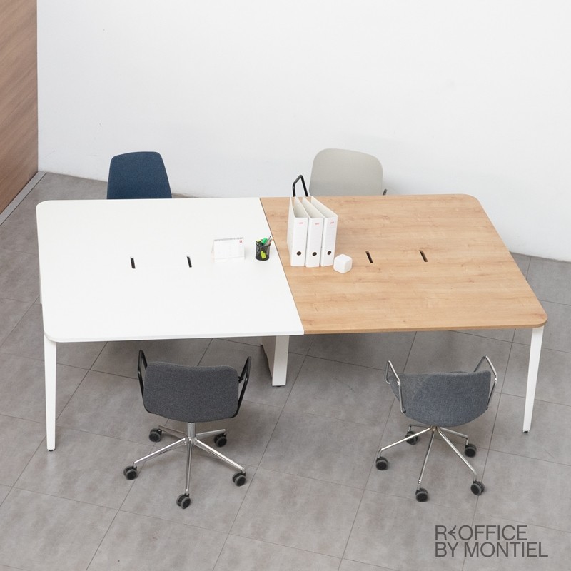 Además, cuenta con una pata intermedia apta para el paso del cableado, asegurando una disposición flexible y sin desorden. Ideal tanto como mesa de reuniones como multipuesto en oficinas, la Versa Innova se adapta a diversas necesidades laborales, ofreciendo funcionalidad y diseño en un solo producto.