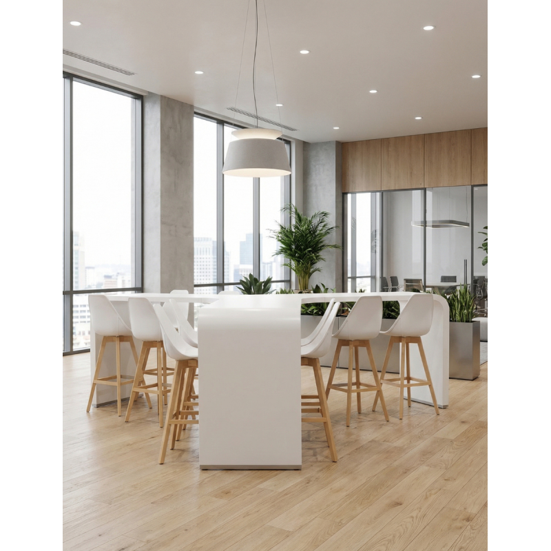 La isla en forma de estrella combina elegancia, funcionalidad y un diseño contemporáneo que se adapta a espacios de trabajo modernos. Su estructura fluida y curvada aporta un aspecto distintivo y profesional, ideal para oficinas ejecutivas o estaciones de trabajo compartidas.