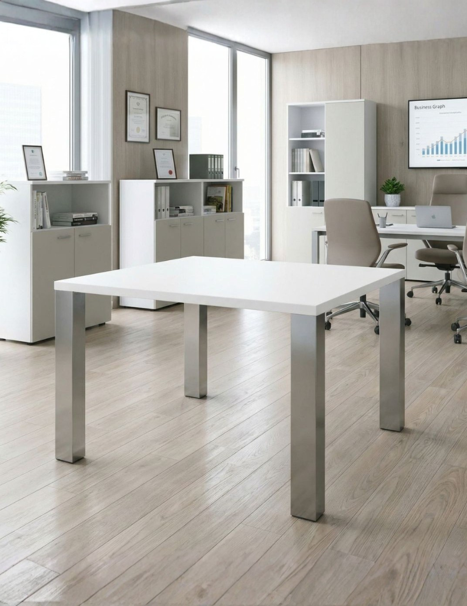 Una mesa de juntas cuadrada pensada para quienes buscan funcionalidad, resistencia y una estética profesional en espacios de reunión compactos.