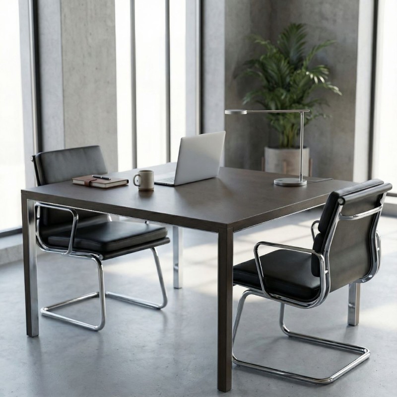 Una opción perfecta para quienes buscan una mesa cuadrada resistente, moderna y de tamaño práctico para su oficina.