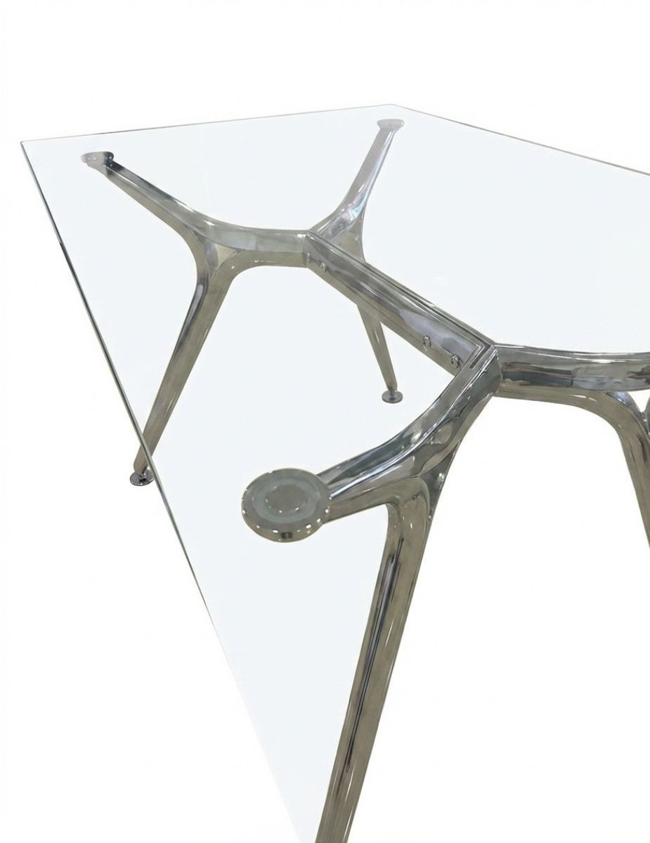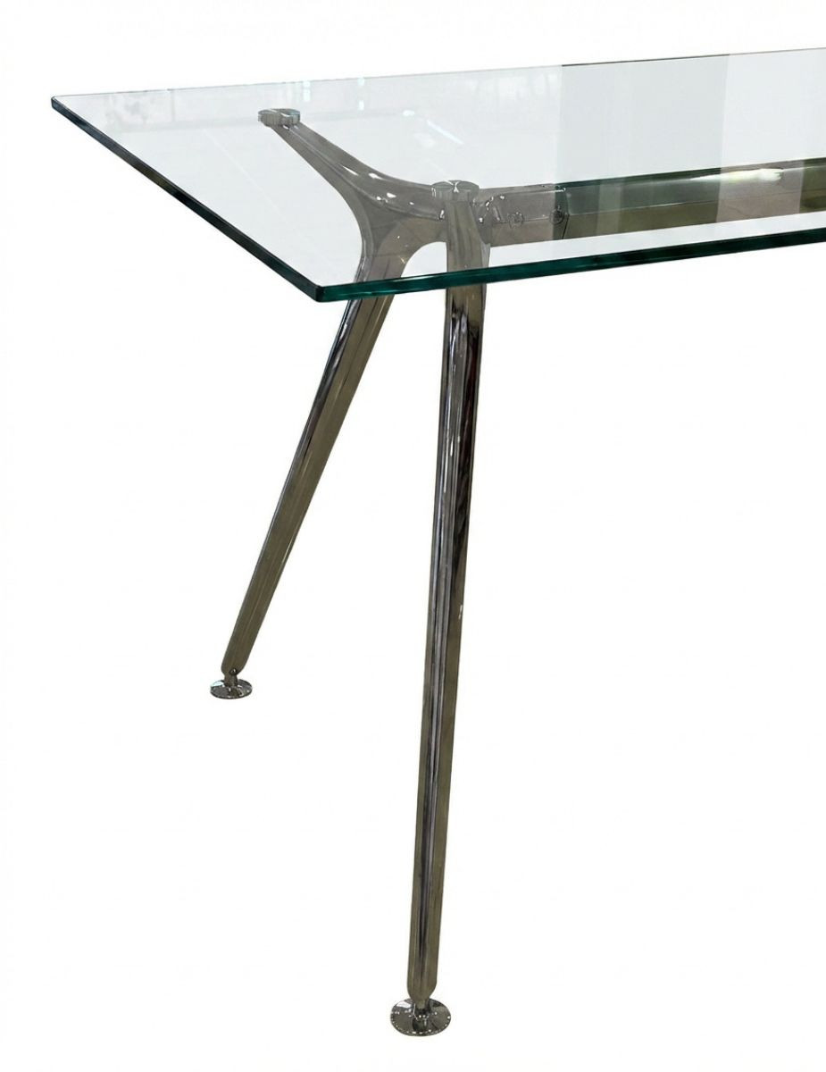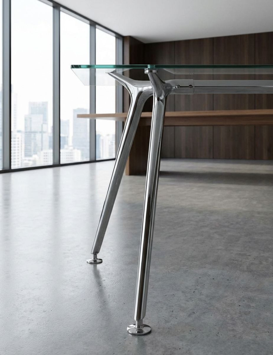 Esta mesa de centro de cristal destaca por su diseño ligero y elegante, ideal para salas de espera, despachos o espacios de recepción que buscan una imagen moderna y sofisticada. Su estructura incorpora una base de 4 patas metálicas en acabado cromado, un elemento que aporta estabilidad, resistencia y una estética contemporánea de gran ligereza visual.