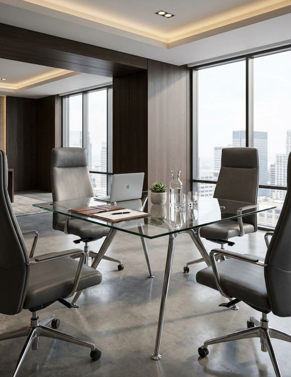 En conjunto, es una mesa funcional, decorativa y con un diseño actual, perfecta para complementar espacios profesionales con un toque elegante.