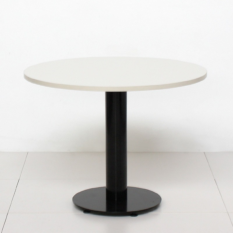 El modelo Meeting de mesa de reuniones, está fabricado con un tablero redondo laminado de 100 o 120 cm de diámetro en color blanco, roble bello o nogal slow. Su estructura metálica de peana, pintada en epoxi color negro, blanco o gris proporciona gran estabilidad y resistencia.