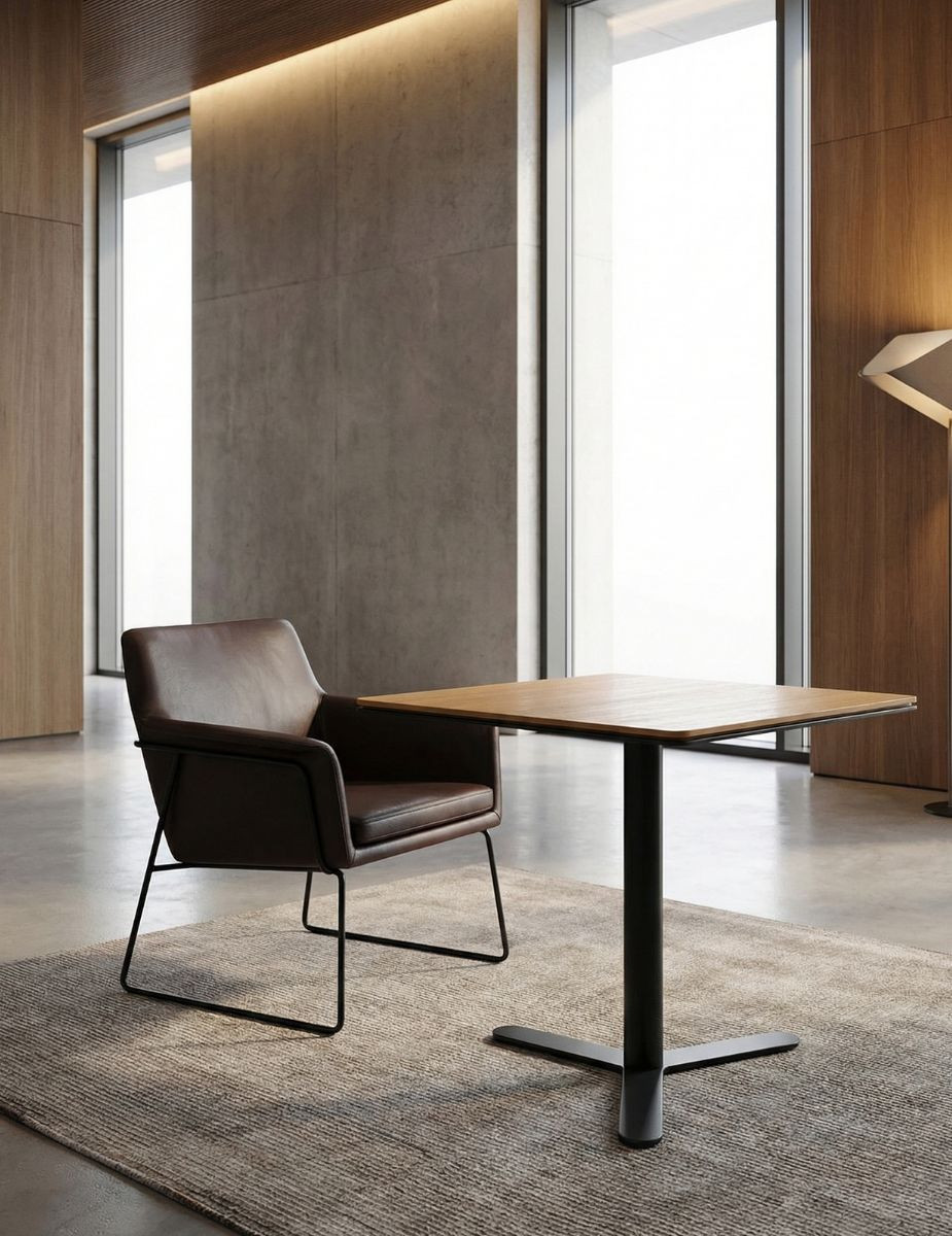 Mesa de diseño industrial, perfectamente creada para quienes buscan un equilibrio entre robustez y estilo. Con unas dimensiones ideales de 73,5 cm de alto, 80 cm de ancho y 80 cm de fondo, esta mesa se adapta con facilidad a cualquier espacio, siendo perfecta tanto para ambientes laborales como para el hogar.