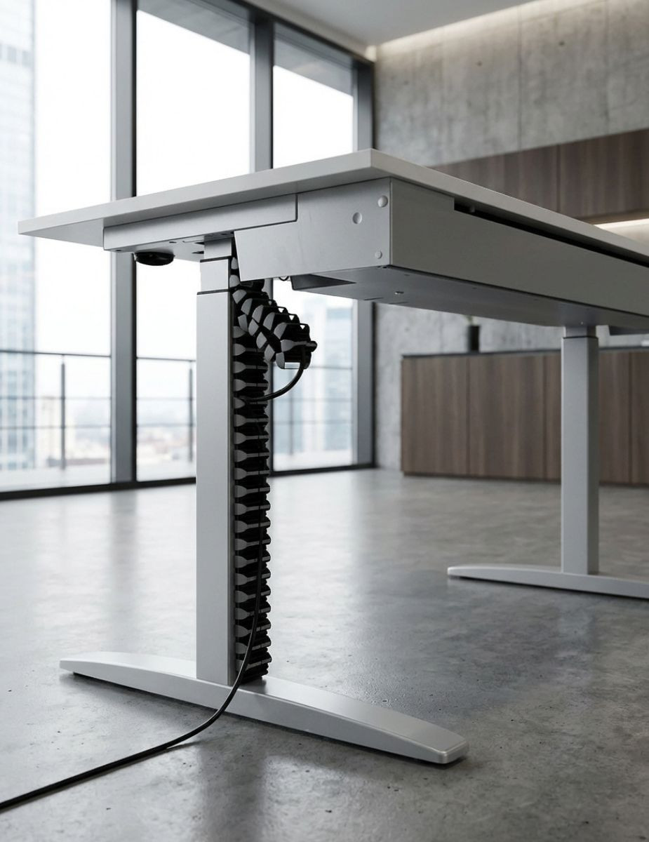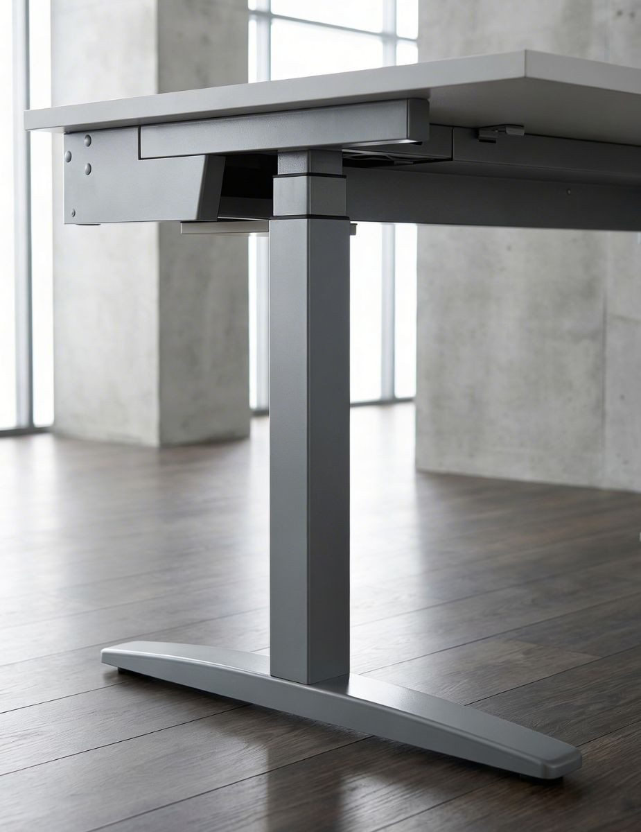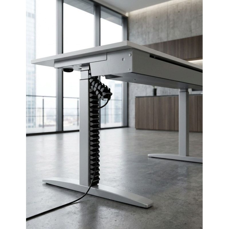 Esta mesa elevable de oficina está diseñada para ofrecer funcionalidad, orden y mayor adaptación en el puesto de trabajo. Su estructura incorpora una base de 2 patas en T metálicas en acabado gris, que aporta estabilidad, resistencia y una imagen profesional ideal para oficinas modernas.