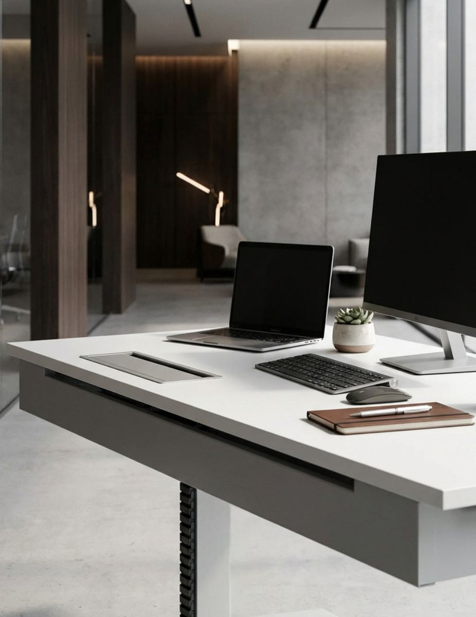 Mesa Blanca con Elevación Motorizada 160x80 cm. de Steelcase