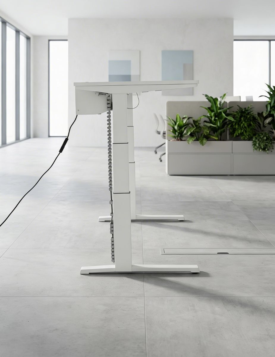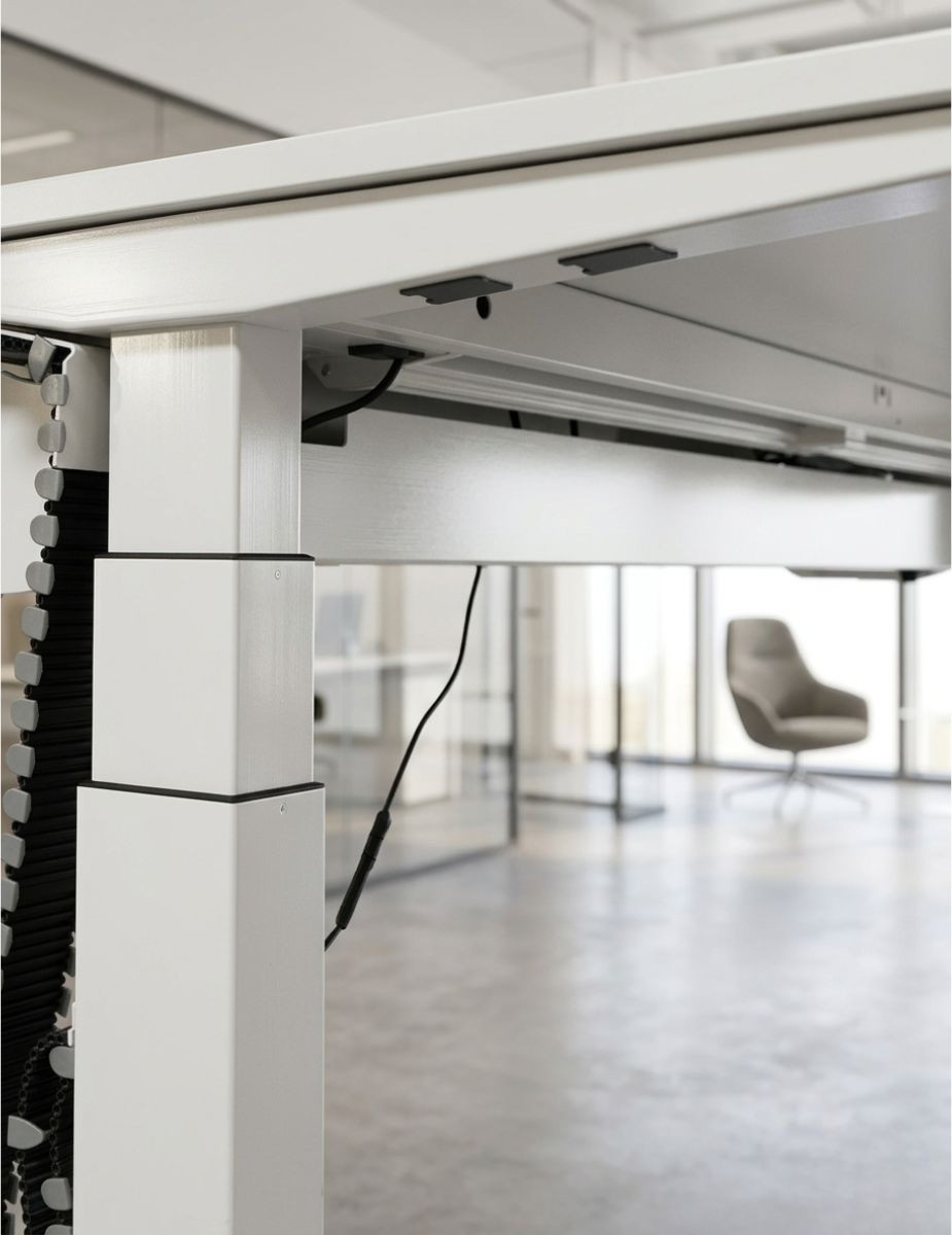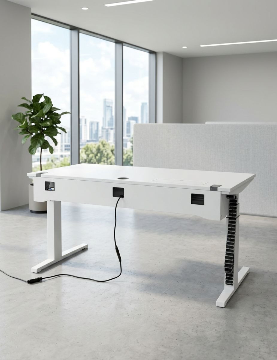 Una mesa elevable profesional, tecnológica y funcional, diseñada para mejorar la postura, optimizar el espacio y elevar el nivel del entorno de trabajo.