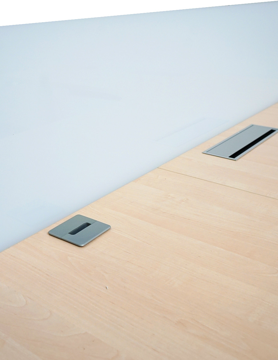 El tablero de melamina en acabado arce ofrece una superficie funcional y cálida, ideal para organizar distintas tareas dentro del mismo espacio. Además, incluye 5 pasacables (2 rectangulares y 3 cuadrados) que facilitan una gestión más limpia y ordenada del cableado.