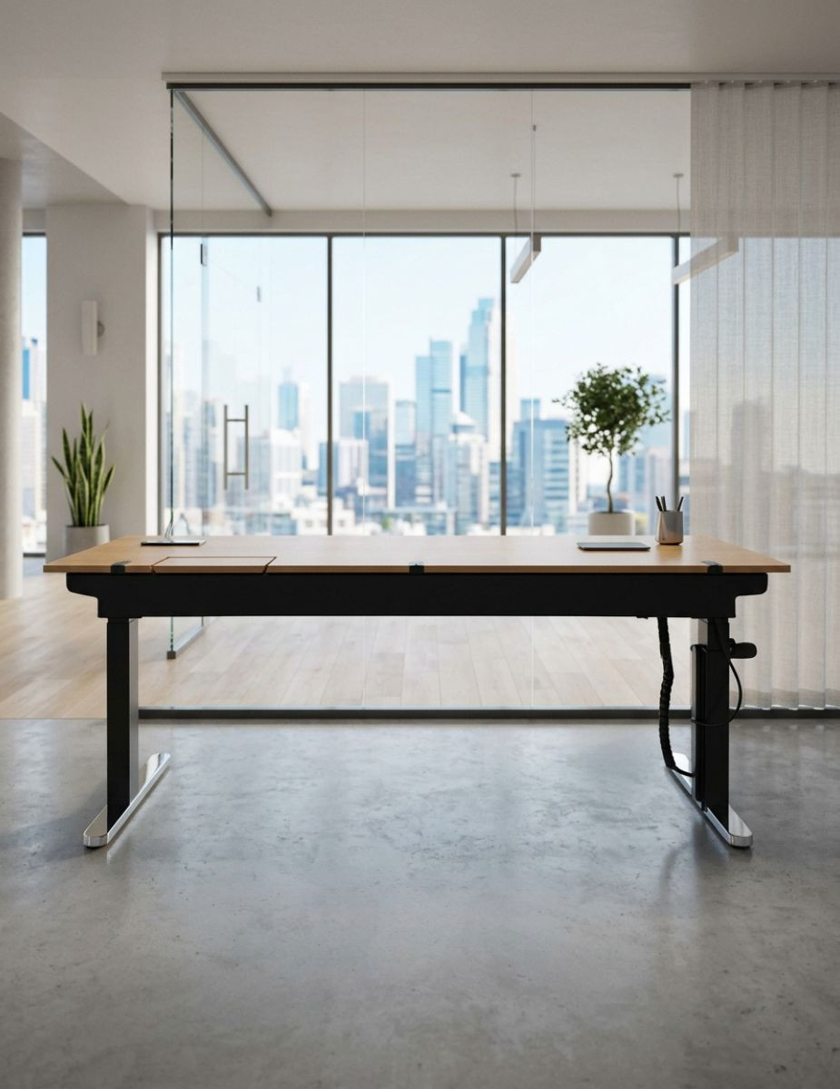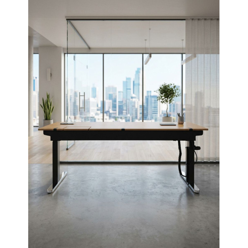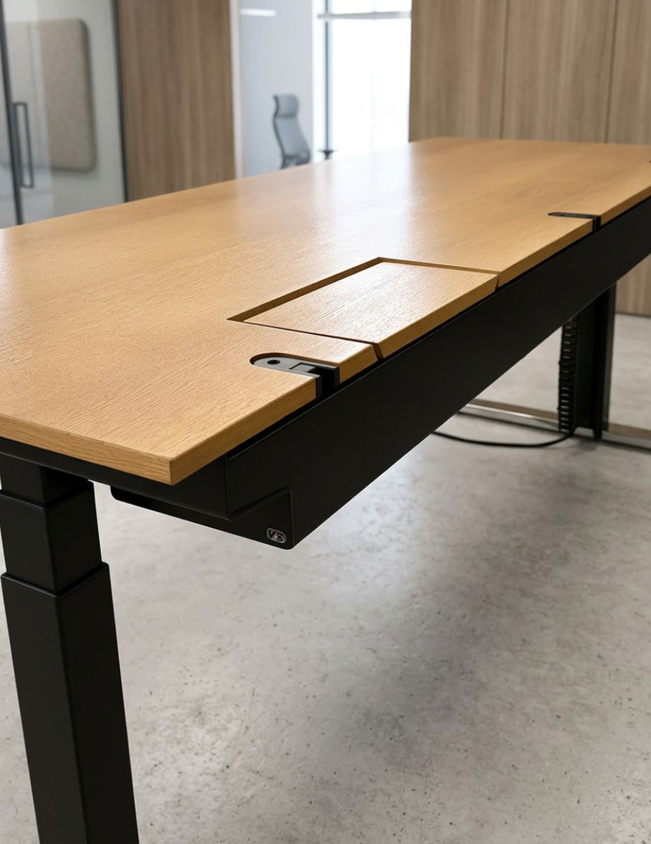 Una mesa elevable robusta, tecnológica y de gran formato, pensada para maximizar productividad, orden y confort postural.