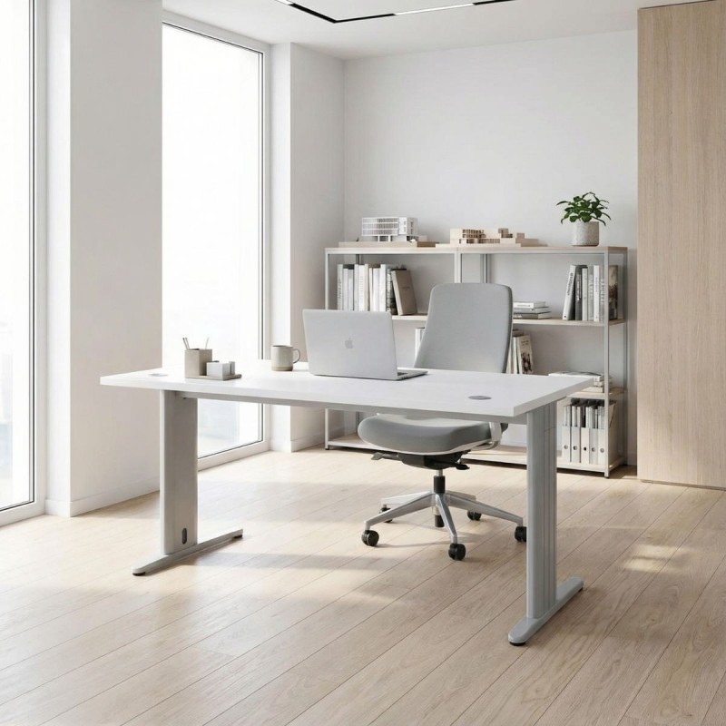 Una mesa de oficina recta pensada para quienes buscan funcionalidad, orden y fiabilidad profesional en su entorno de trabajo.