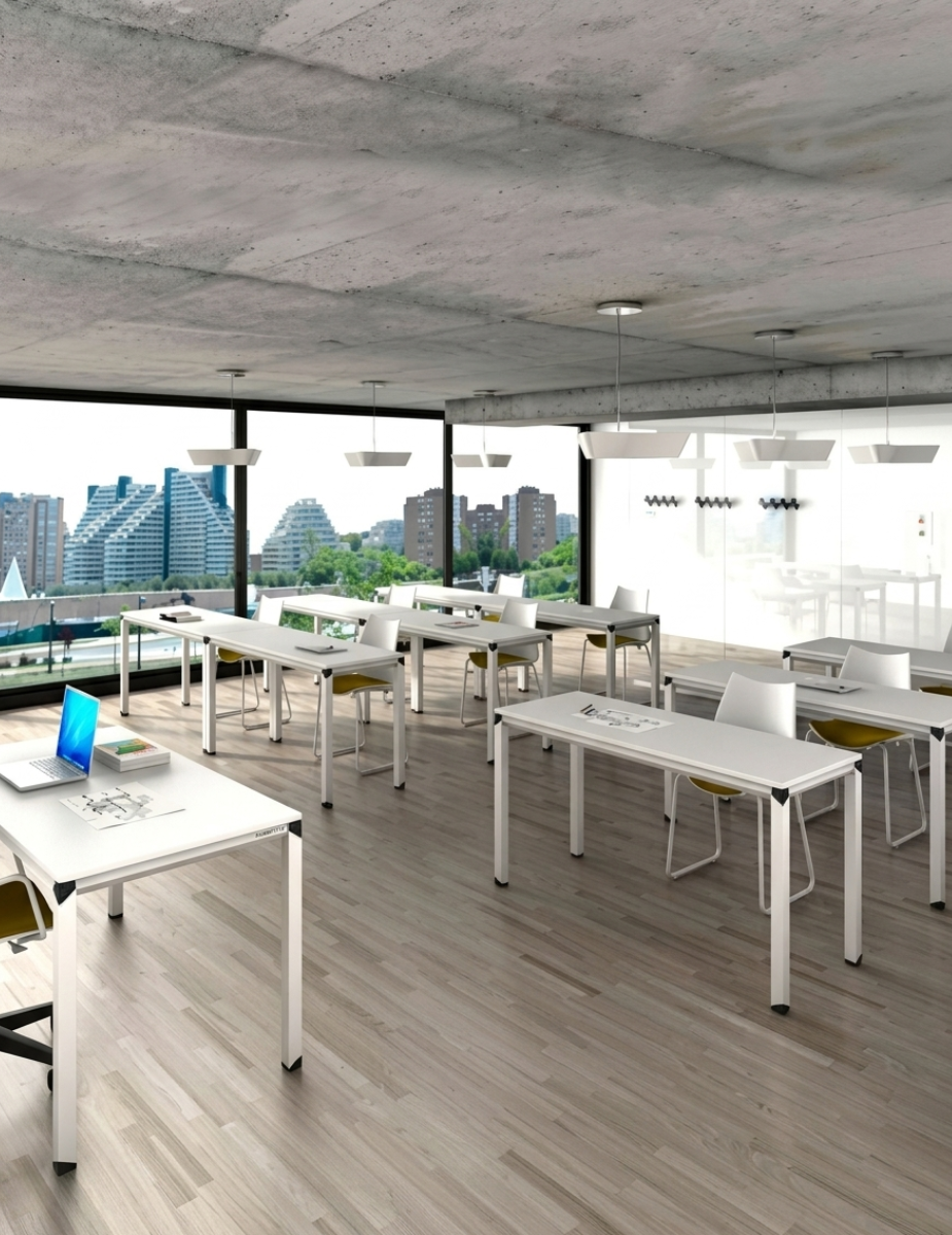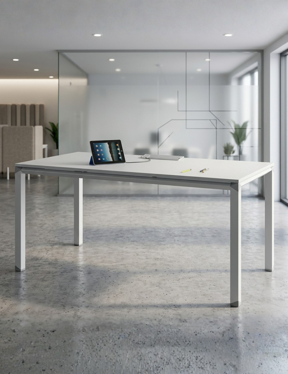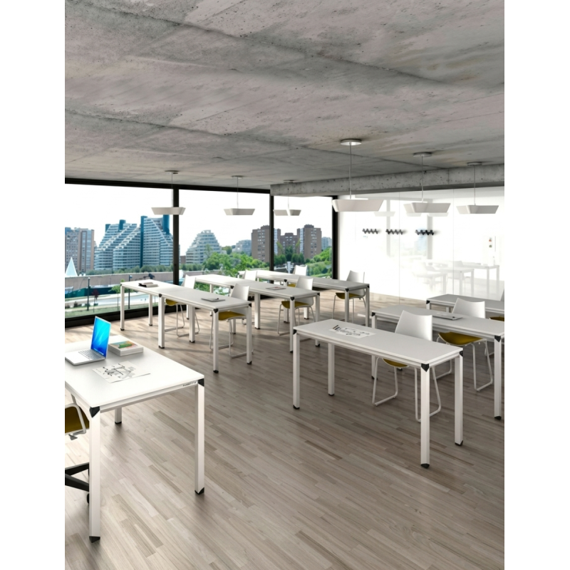 Su estructura está fabricada en acero, acabada con color blanco, aluminio o grafito a elegir. Ambas cosas te permitirán configurar la mesa de la manera que más se adapte a la estancia donde estará colocada.