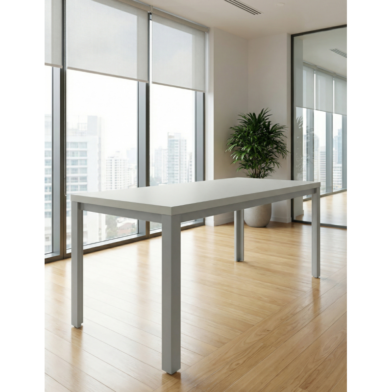 Su tablero es de melamina con un grosor de 25 mm está disponible en diferentes acabados a elegir. La mesa Line tiene estructura de 4 patas metálicas, las cuales las podrás elegir en color aluminizado, blanco o grafito.