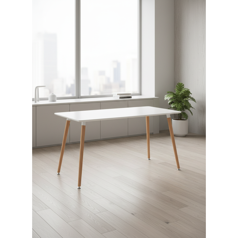 Mesa nórdica con tablero lacado en color blanco nueva, ideal para oficinas