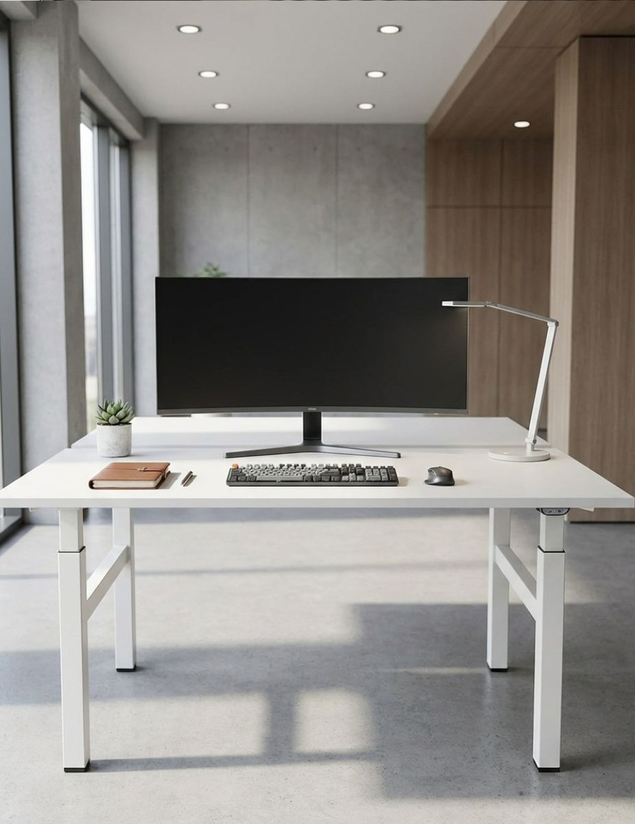 Esta mesa de oficina elevable es una solución práctica y moderna para espacios de trabajo que buscan ergonomía, funcionalidad y una estética limpia. Su base metálica elevable en acabado blanco aporta estabilidad, resistencia y una imagen actual, ideal para oficinas contemporáneas.