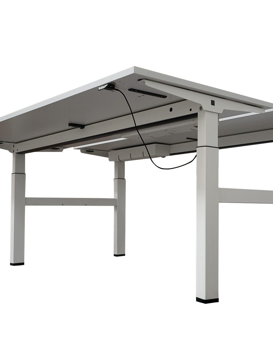 Además, incorpora altura elevable mediante sistema motorizado, una característica que permite adaptar el puesto de trabajo de forma cómoda y rápida según las necesidades del usuario. En conjunto, es una mesa funcional, resistente y pensada para mejorar el confort en el día a día.