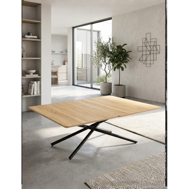 Además, incorpora elevación a gas y accionamiento mediante tirador, facilitando un uso cómodo y práctico. Gracias a su diseño inteligente, esta mesa extensible es perfecta para optimizar el espacio sin renunciar a una estética actual y funcional.