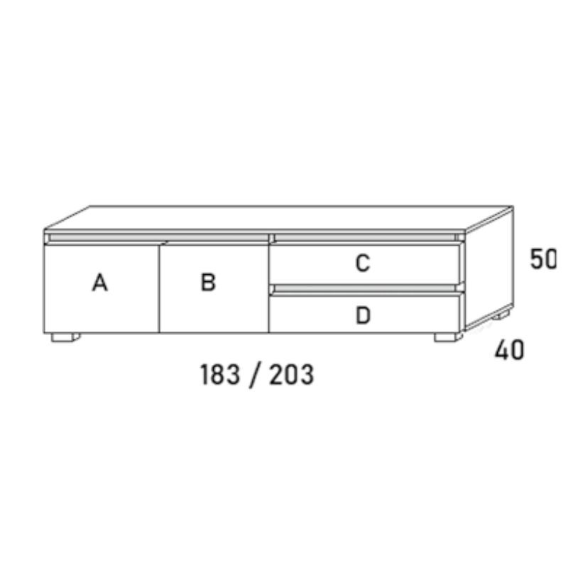 Dimensiones Módulo Bajo - Alto: 50 cm. / Ancho: 203 cm. / Fondo 40 cm. /