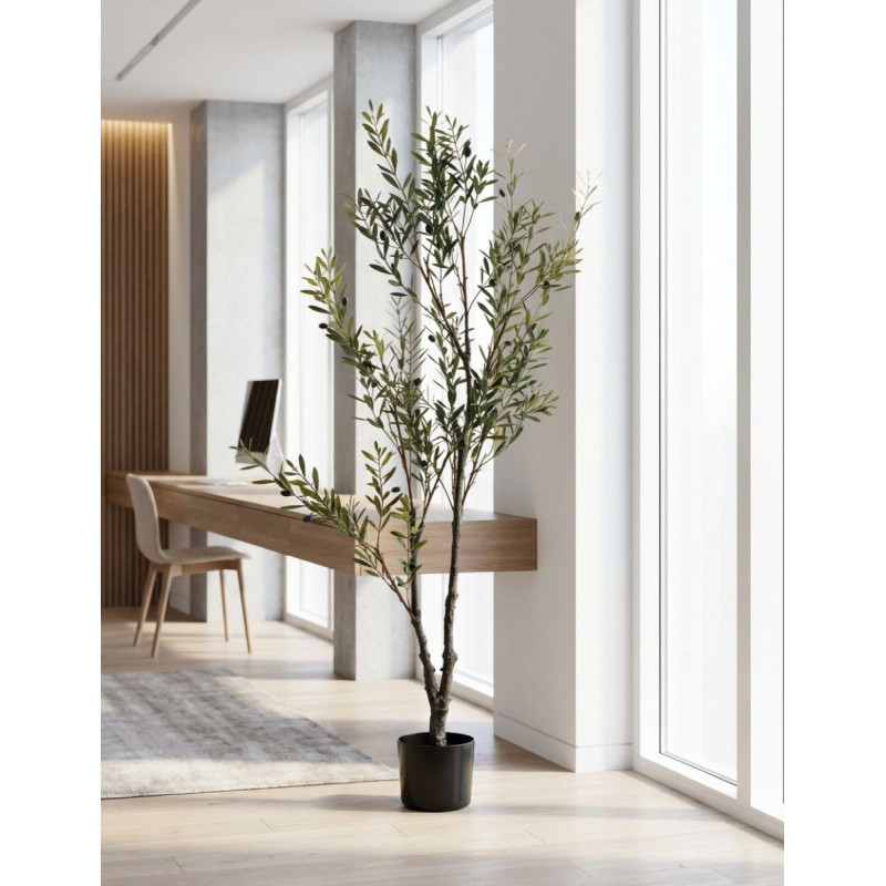 Se trata de un olivo joven con acabado artesanal, cuidado al detalle para reproducir fielmente la textura del tronco, las hojas y sus preciosas aceitunas decorativas, logrando una estética auténtica durante todo el año.