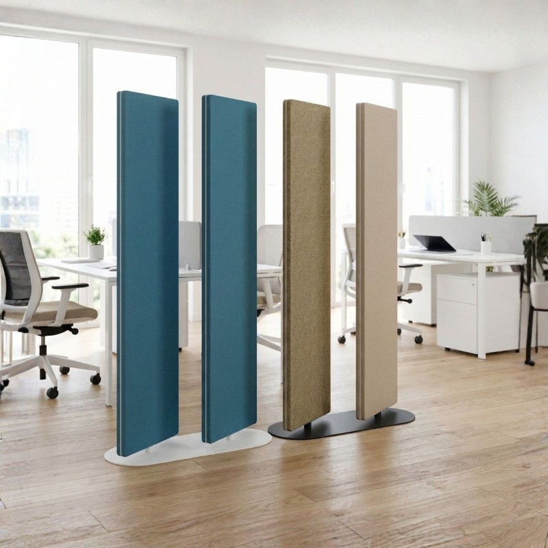 Este biombo divisorio está especialmente para separar espacios en oficinas, espacios de coworking y entornos de trabajo. Está formada por módulos de dos paneles los cuales pueden rotar 360º por lo que podrás disponerlos de forma que tape totalmente la zona posterior o dejar que pase la luz sin ver la totalidad de forma que mantienes la luminosidad en el entorno de trabajo. Esto le otorga gran flexibilidad.