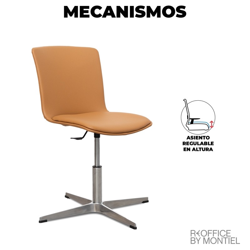 La base metálica cromada, con su diseño en forma de aspa de 4 radios, ofrece estabilidad y resistencia, garantizando durabilidad a lo largo del tiempo. La capacidad giratoria de la silla permite una mayor flexibilidad y comodidad para los usuarios, facilitando la interacción en diferentes entornos de trabajo.