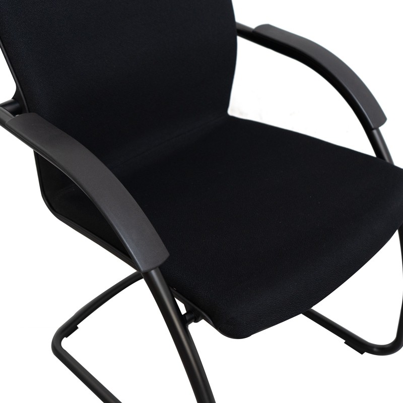 Su estructura metálica con patas a juego en acabado negro garantiza estabilidad y durabilidad, incluso en entornos de uso intensivo. Los brazos fijos de polipropileno negro ofrecen un apoyo cómodo y mantienen la coherencia estética del diseño.