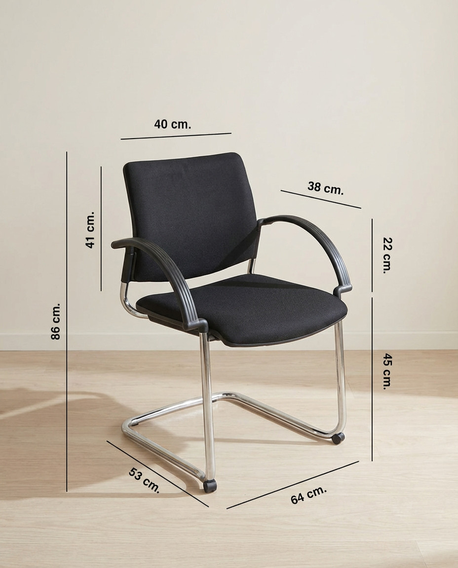 Una silla confidente práctica y elegante, perfecta para salas de espera, reuniones o espacios colaborativos. Su base patín metálica en acabado cromado aporta estabilidad y un diseño ligero, además de incorporar topes frontales que protegen el suelo y mejoran el apoyo.