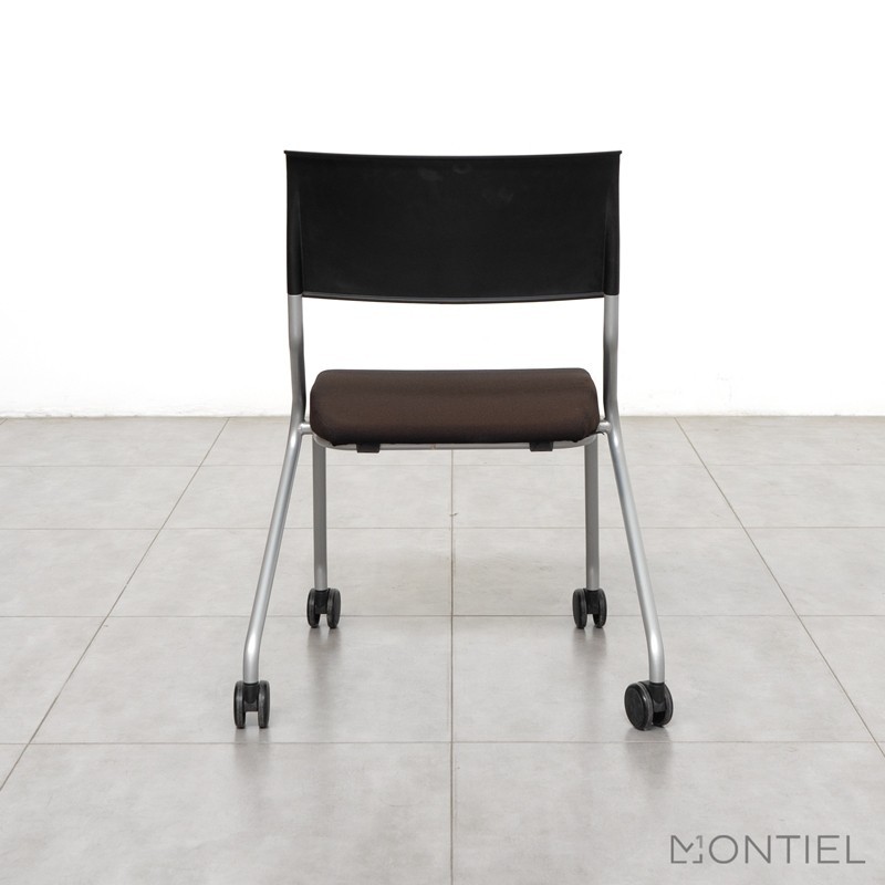 Dispone de una estructura de 4 patas de acabado gris, las cuales constan de 4 ruedas que facilitarán el desplazamiento. Su respaldo está fabricado de poliamida de acabado negro, tiene una forma ergonómica en color negro, y está recomendado para pesos de usuarios de hasta 110 kg.