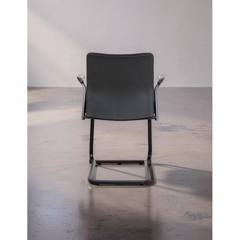Sus brazos fijos están fabricados del mismo material que la estructura, y sus reposabrazos son de polipropileno negro.