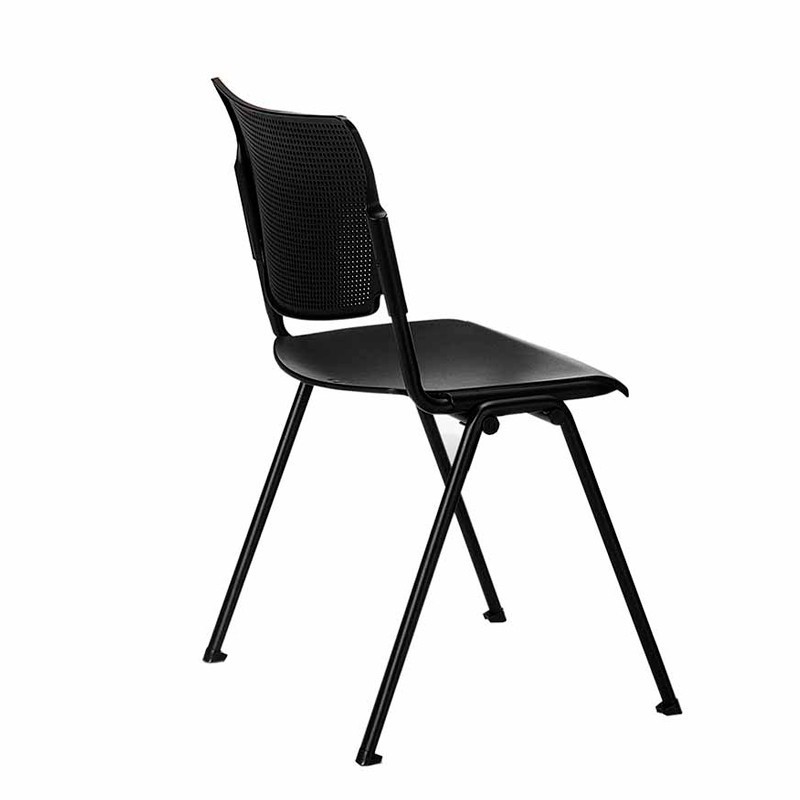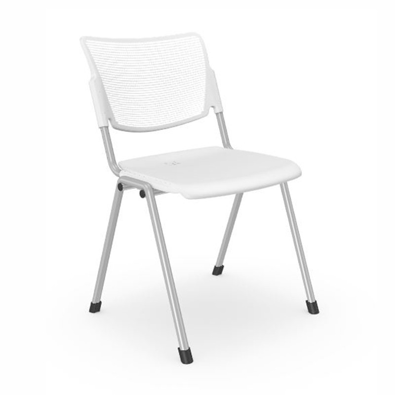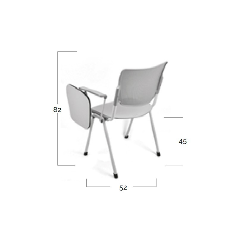 Está fabricada en polipropileno de acabado a elegir entre gris o blanco. Consta de un respaldo multiperforado, que facilita la transpirabilidad de la espalda.