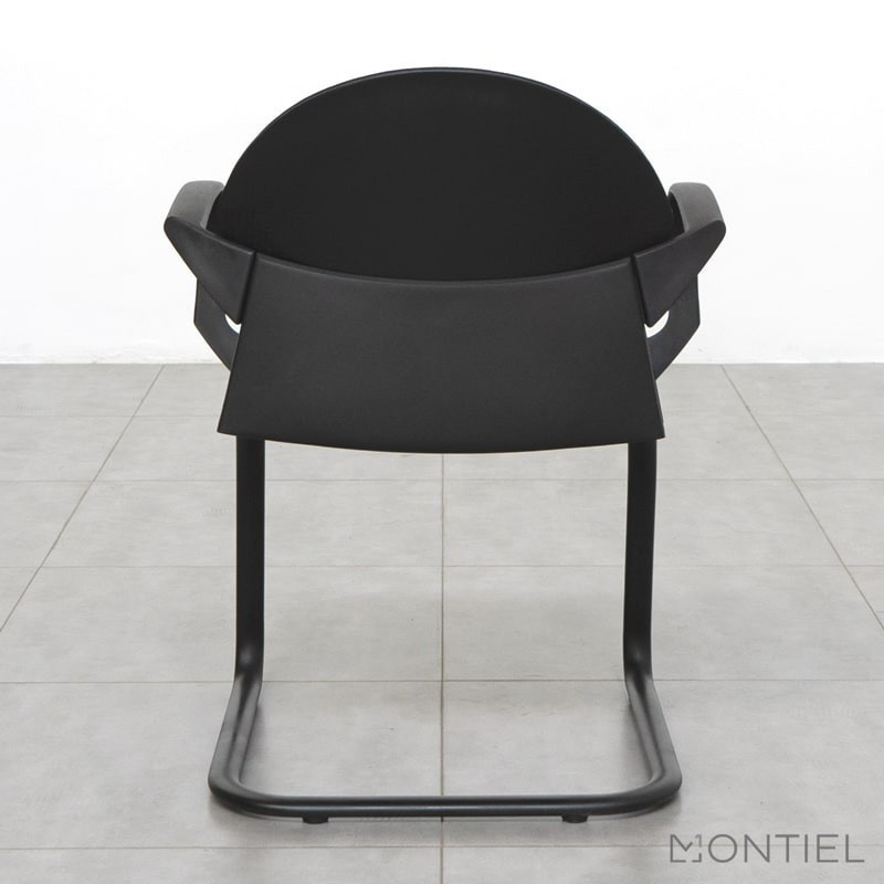 Sus brazos son una extensión del respaldo, por lo que son fijos y están fabricados de polipropileno negro.