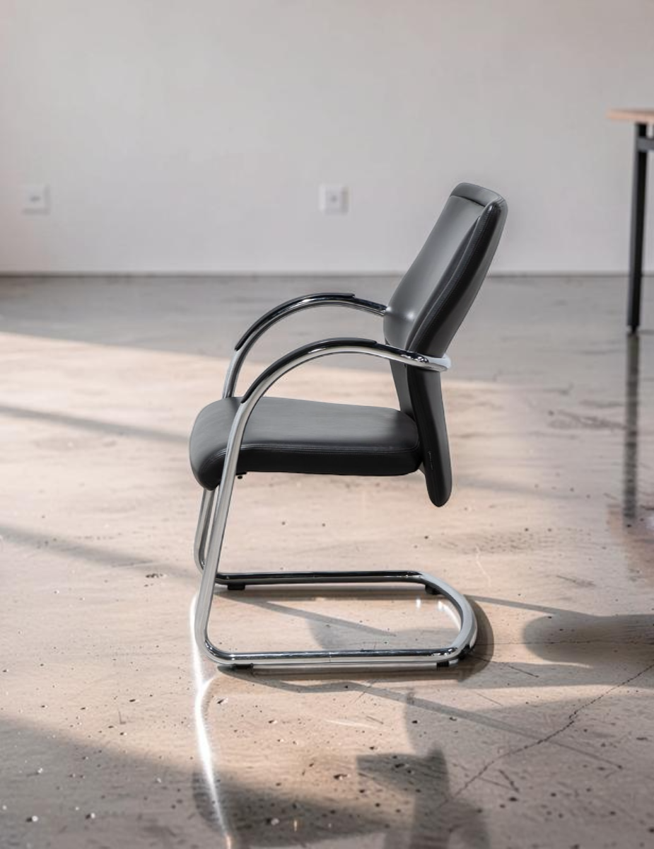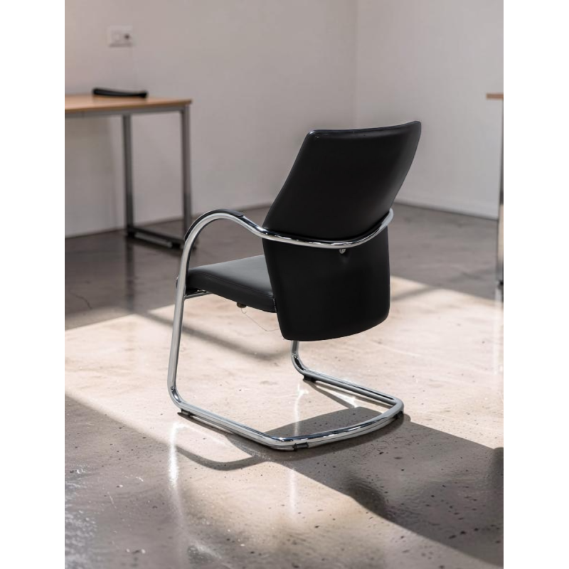 La estructura metálica de patín cromado le otorga a la silla una base sólida y estable, al tiempo que agrega un toque de brillo y elegancia. Esta característica hace que la silla sea perfecta para recepciones, salas de espera y como asiento para visitantes en despachos u oficinas.