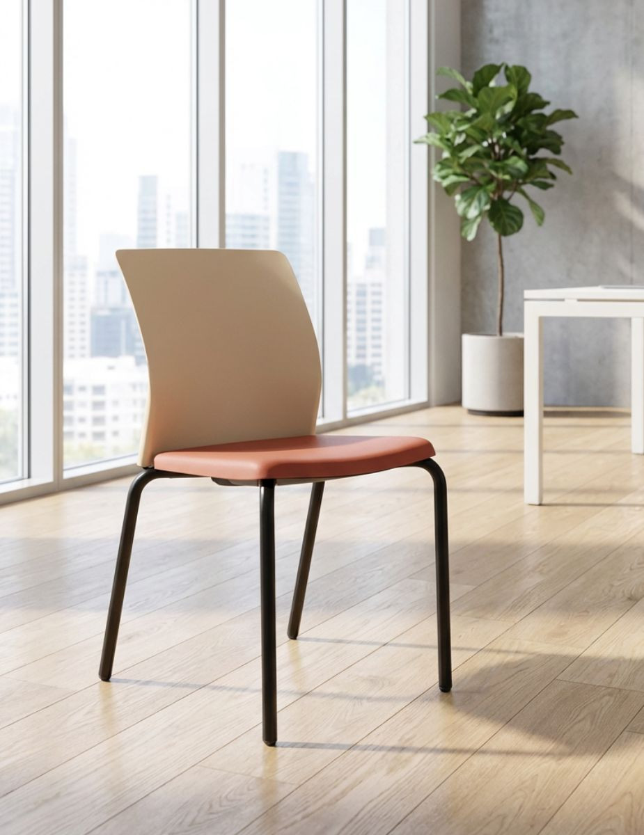 El asiento de polipropileno de acabado salmón agrega un toque de color y vitalidad a la silla, creando un ambiente dinámico y estimulante. Este asiento también está diseñado pensando en la comodidad y la comodidad del usuario, con una forma ergonómica que se adapta a la forma del cuerpo y proporciona un apoyo adecuado.