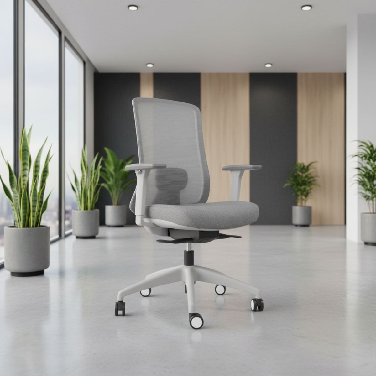 La silla de escritorio de malla Edward de Kunna ofrece un diseño ergonómico combinado con prestaciones avanzadas, ideal para oficinas, despachos y cualquier espacio de trabajo profesional. Su base giratoria, fabricada en polipropileno de alta resistencia, está disponible en acabados negro o gris, garantizando estabilidad y un movimiento suave, perfecto para el uso intensivo.