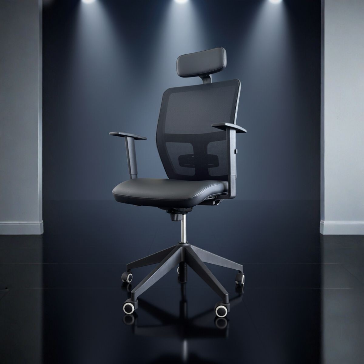 De gran adaptabilidad, gracias a su sistema sincro y su sistema de elevación a gas, lumbar regulable, esta silla operativa incluye reposabrazos regulables en altura, fabricados en poliamida color negro.