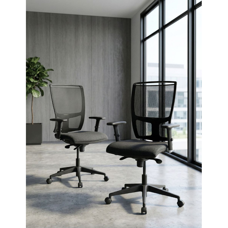 El respaldo de malla permite una ventilación óptima y se complementa con un regulador de altura que se adapta a la postura de cada usuario. Los brazos 2D ajustables mejoran la ergonomía y reducen la fatiga en brazos y hombros. Además, cuenta con mecanismo sincro, regulación de altura y mecanismo trasla para ajustar la profundidad del asiento, proporcionando una experiencia totalmente personalizada.